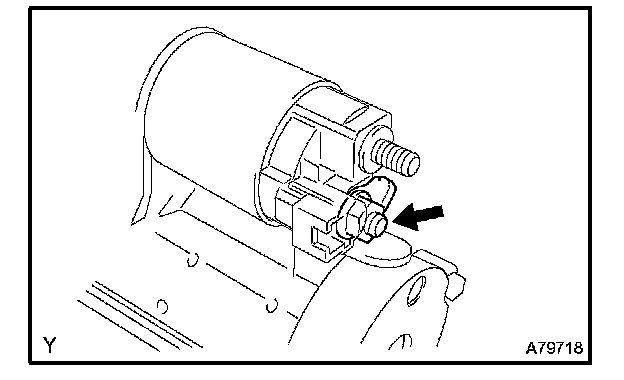 (1) Disconnect the negative (-) lead from the switch body. Check that the clutch pinion gear returns.