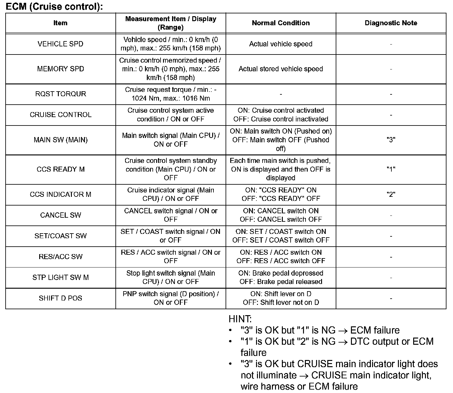 HINT: Using the intelligent tester's DATA LIST allows switch, sensor, actuator and other item values to be read without removing any parts. Reading the DATA LIST early in troubleshooting is one way to save time.
