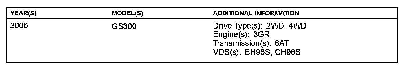 Refer to the Technical Information System (TIS) 2006 model year GS 300 Repair Manual: