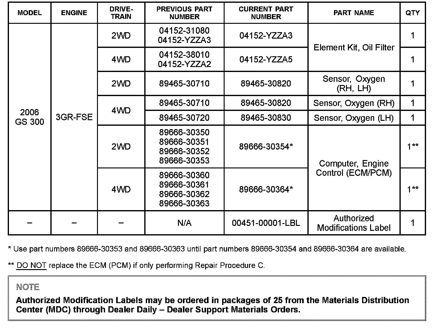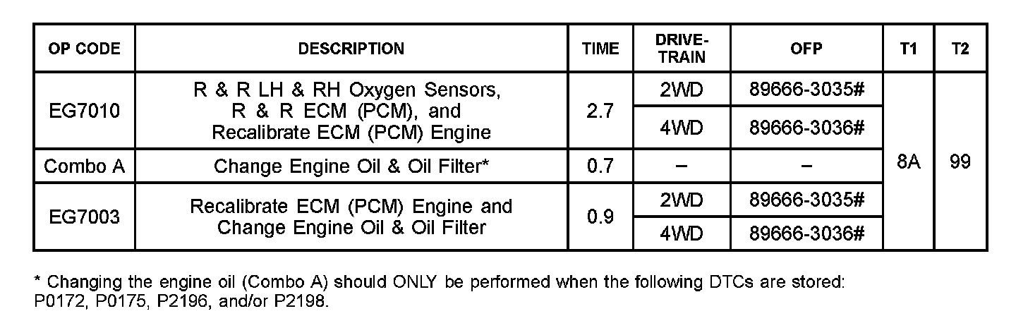 ^ Replace ECM (PCM) update ECM (PCM) calibration (as necessary) and change engine oil and oil filter.