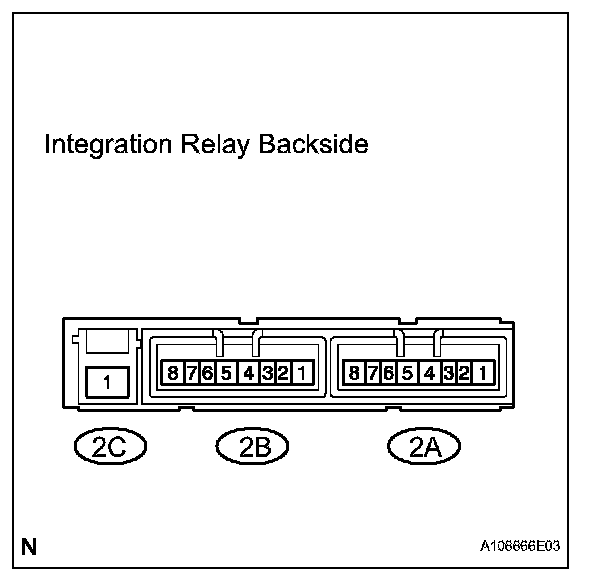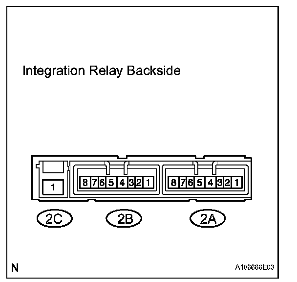 - The internal circuit of the integration relay is as shown in the illustration. Inspect the integration relay using the following procedures.