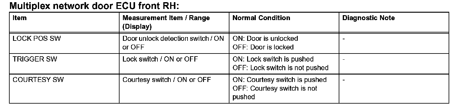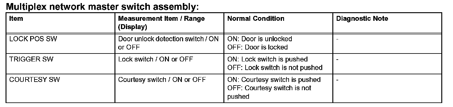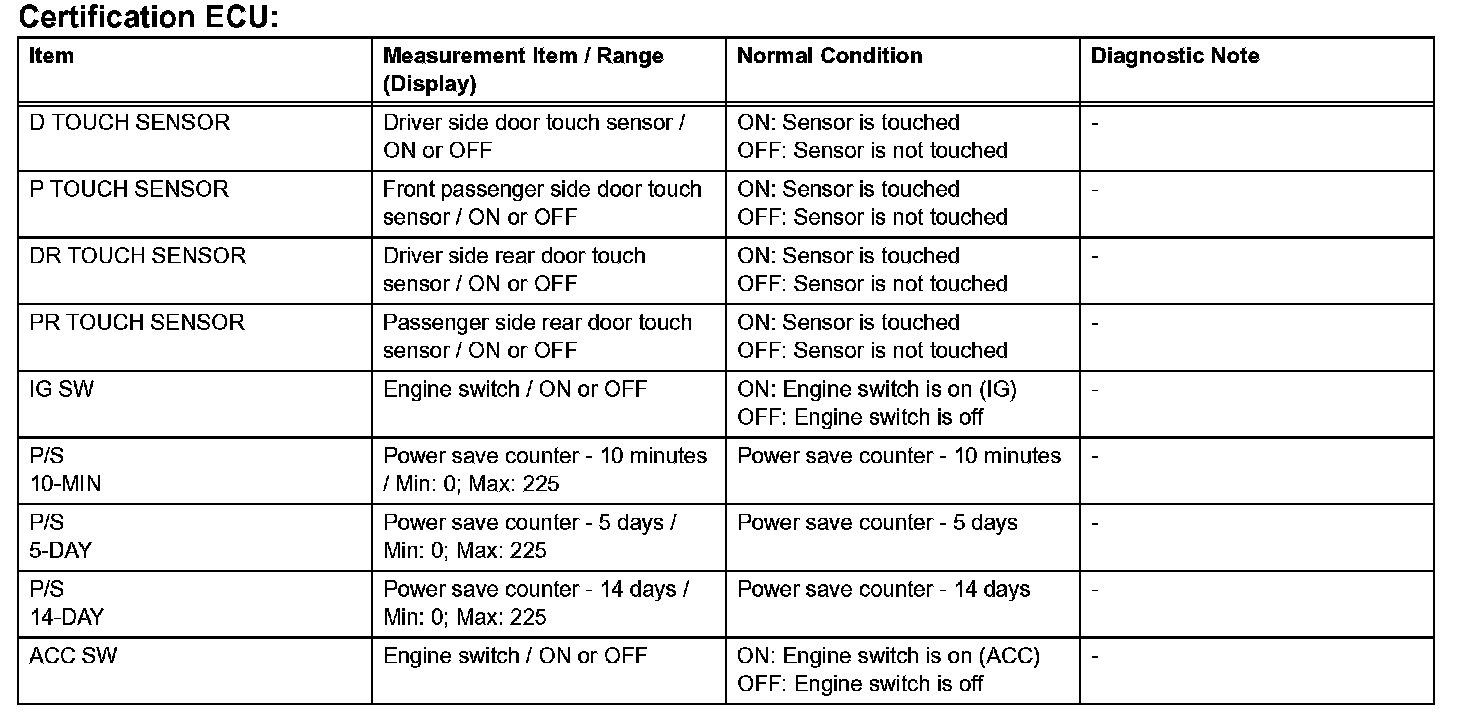 Home >> Lexus >> 2006 >> GS 430 V8-4.3L (3UZ-FE) >> Repair and Diagnosis >> Body and Frame >> Locks >> Keyless Entry >> Testing and Inspection >> Scan Tool Testing and Procedures >> Smart Access System With Push-Button Start >> Data List