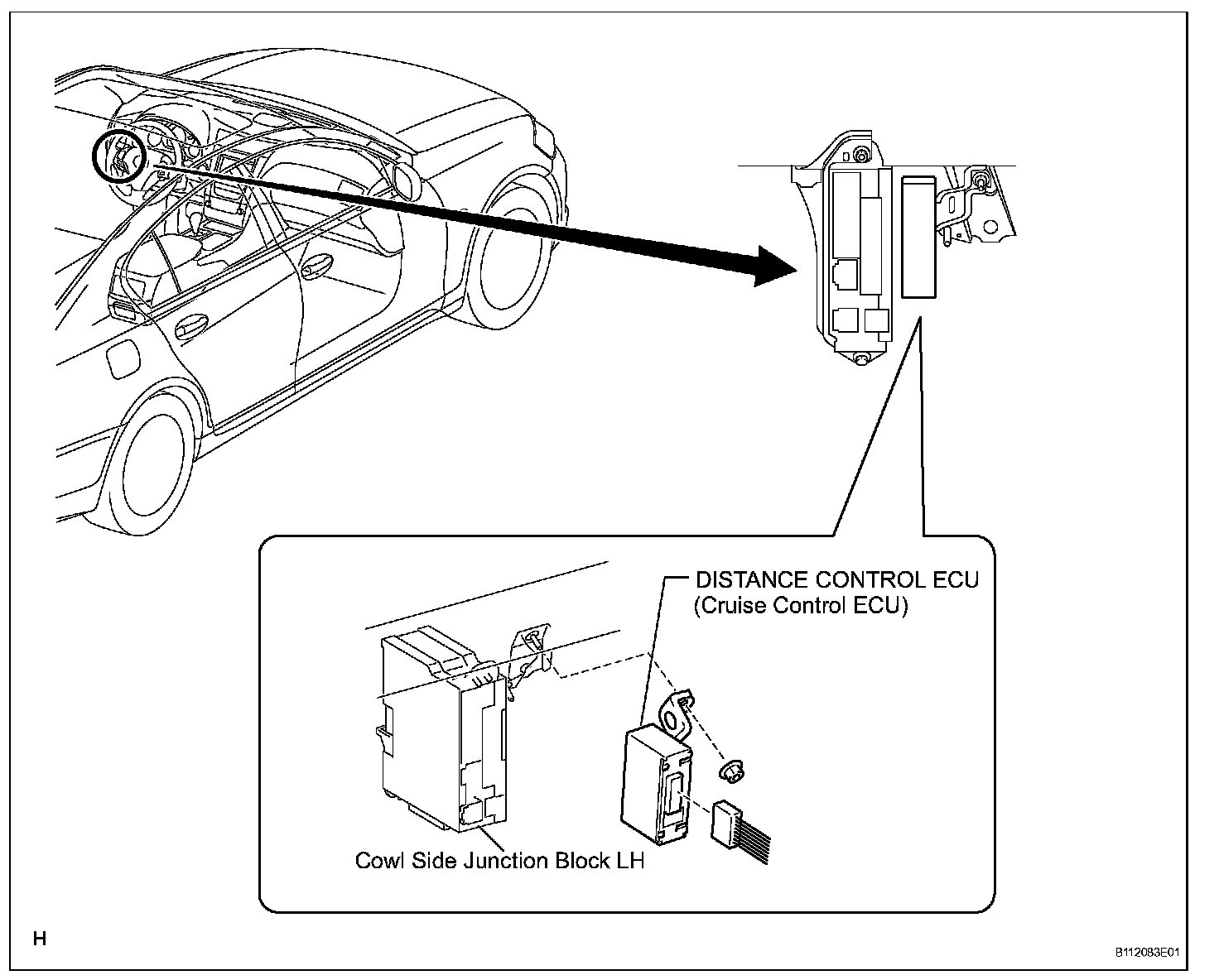 NOTE: Do not install the distance control ECU assembly if it has been damaged or if it has received some sort of shock.