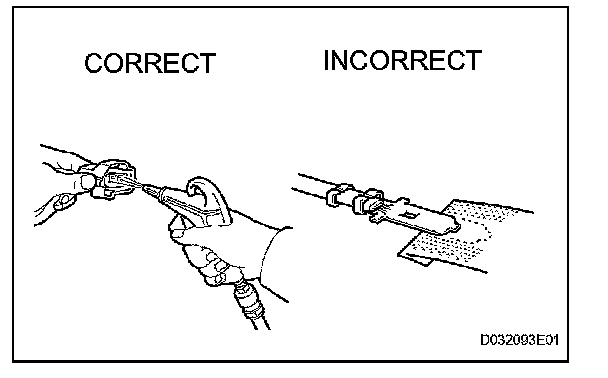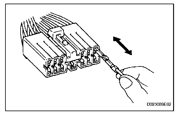2. If there is abnormal contact pressure, replace the female terminal. If the male terminal is goldplated (gold color), use a gold-plated female terminal; if it is silver-plated (silver color), use a silver-plated female terminal.