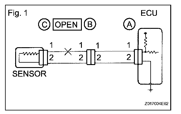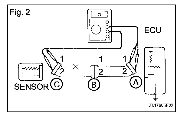 a. For an open circuit in the wire harness in Fig.1, check the resistance or voltage, as described below.
