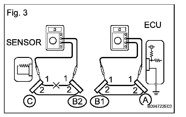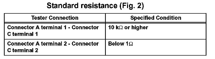 1. Disconnect connectors A and C and measure the resistance between them.