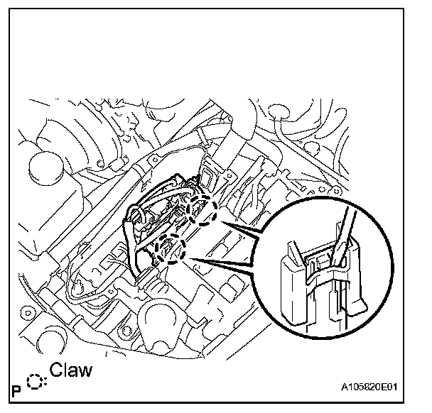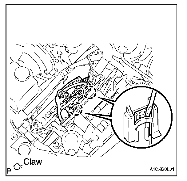 NOTE: Make sure that the wire harness does not get caught between other parts.