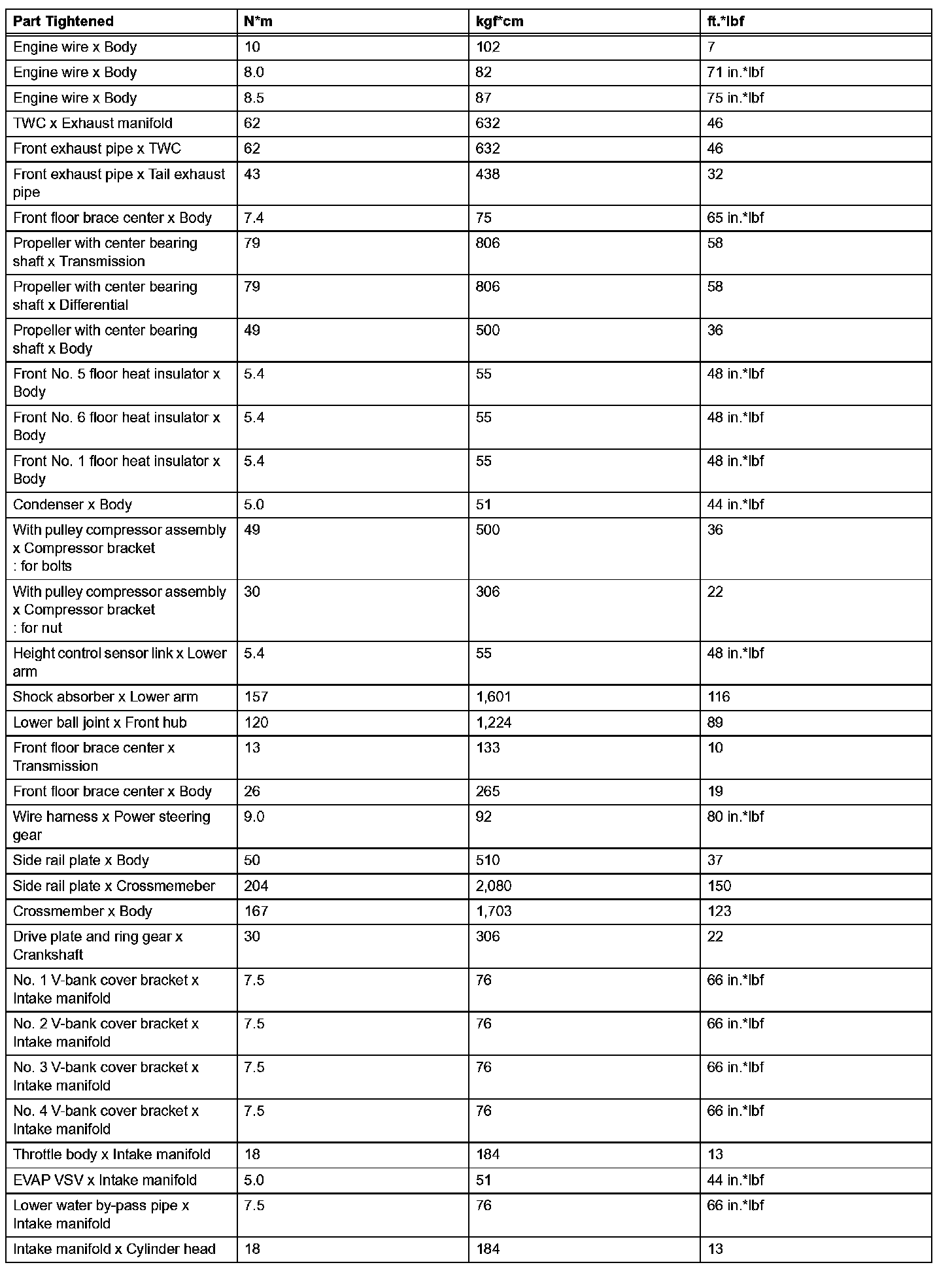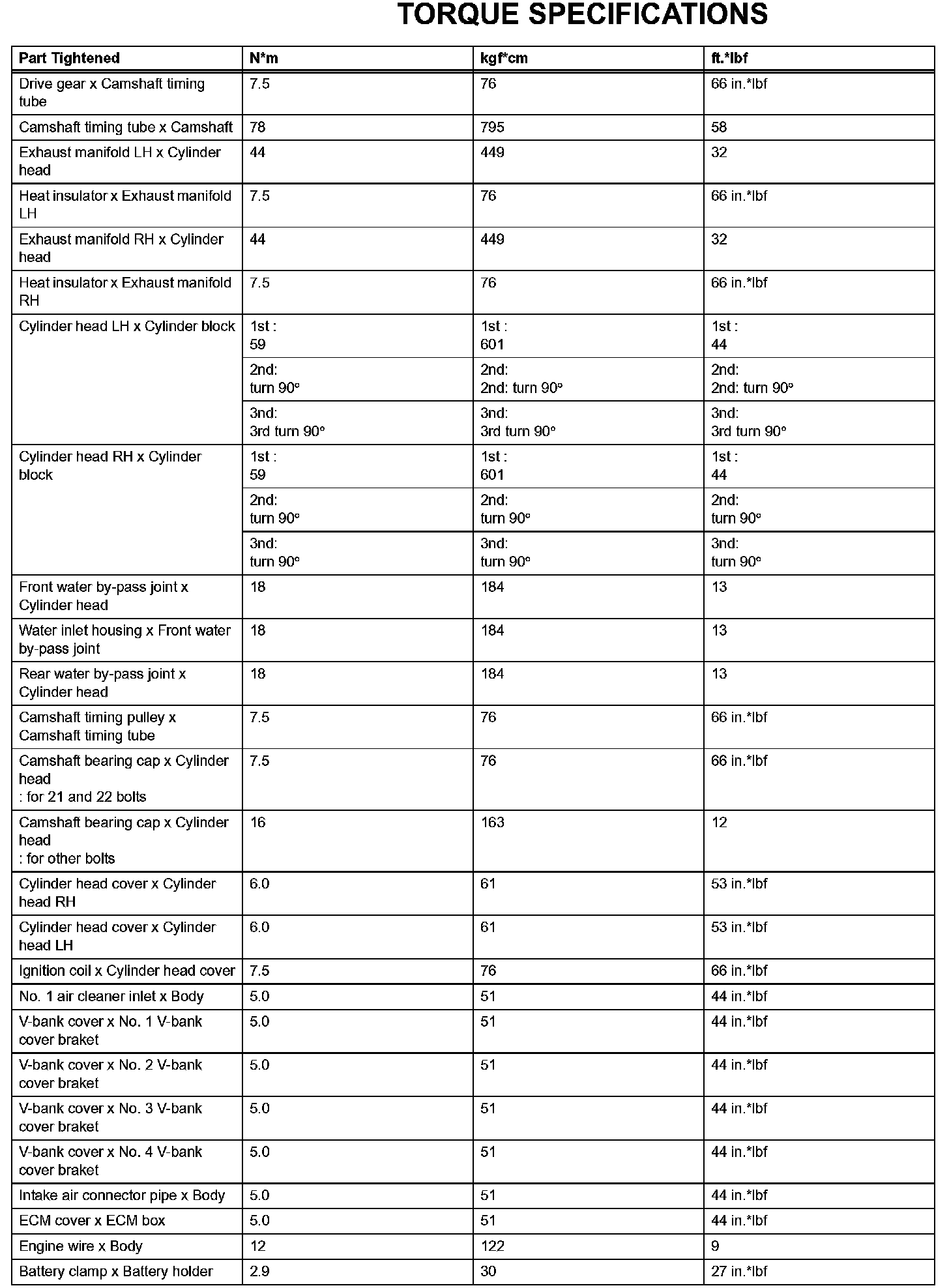 Engine Mechanical-Torque Specifications (Part 2):
