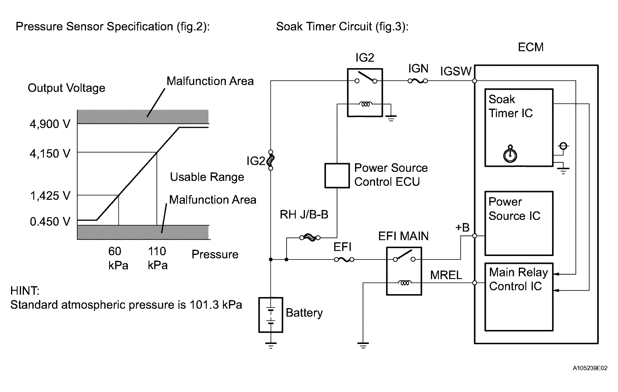 (b) Pressure sensor Indicates pressure as voltage. ECM supplies regulated 5 V to pressure sensor, and uses feedback from sensor to monitor EVAP system pressure (refer to Fig 5).