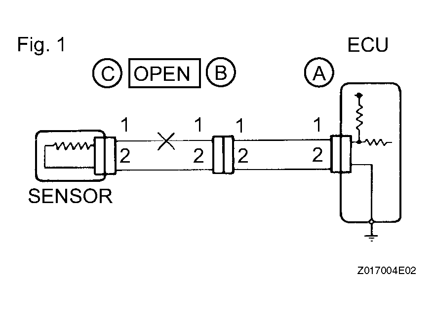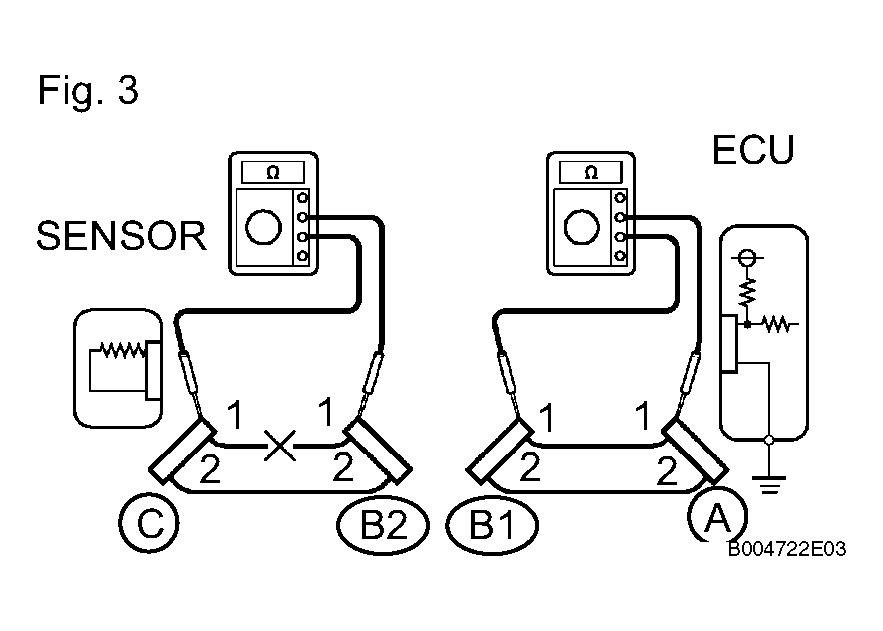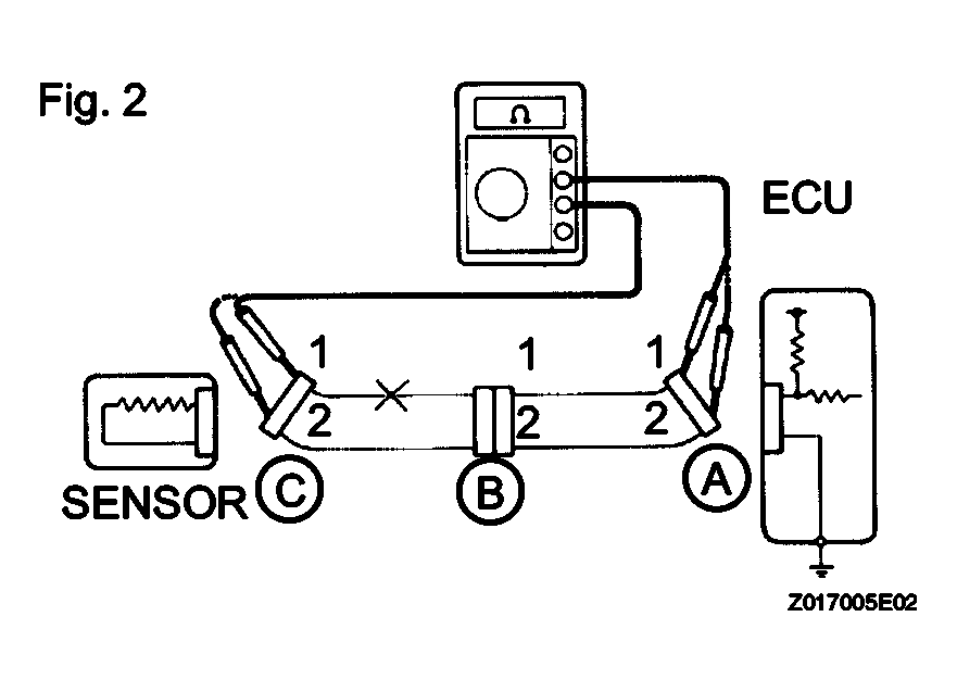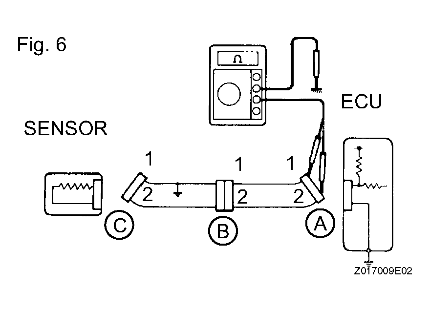 - For an open circuit in the wire harness in Fig 6, check the resistance or voltage, as described below.