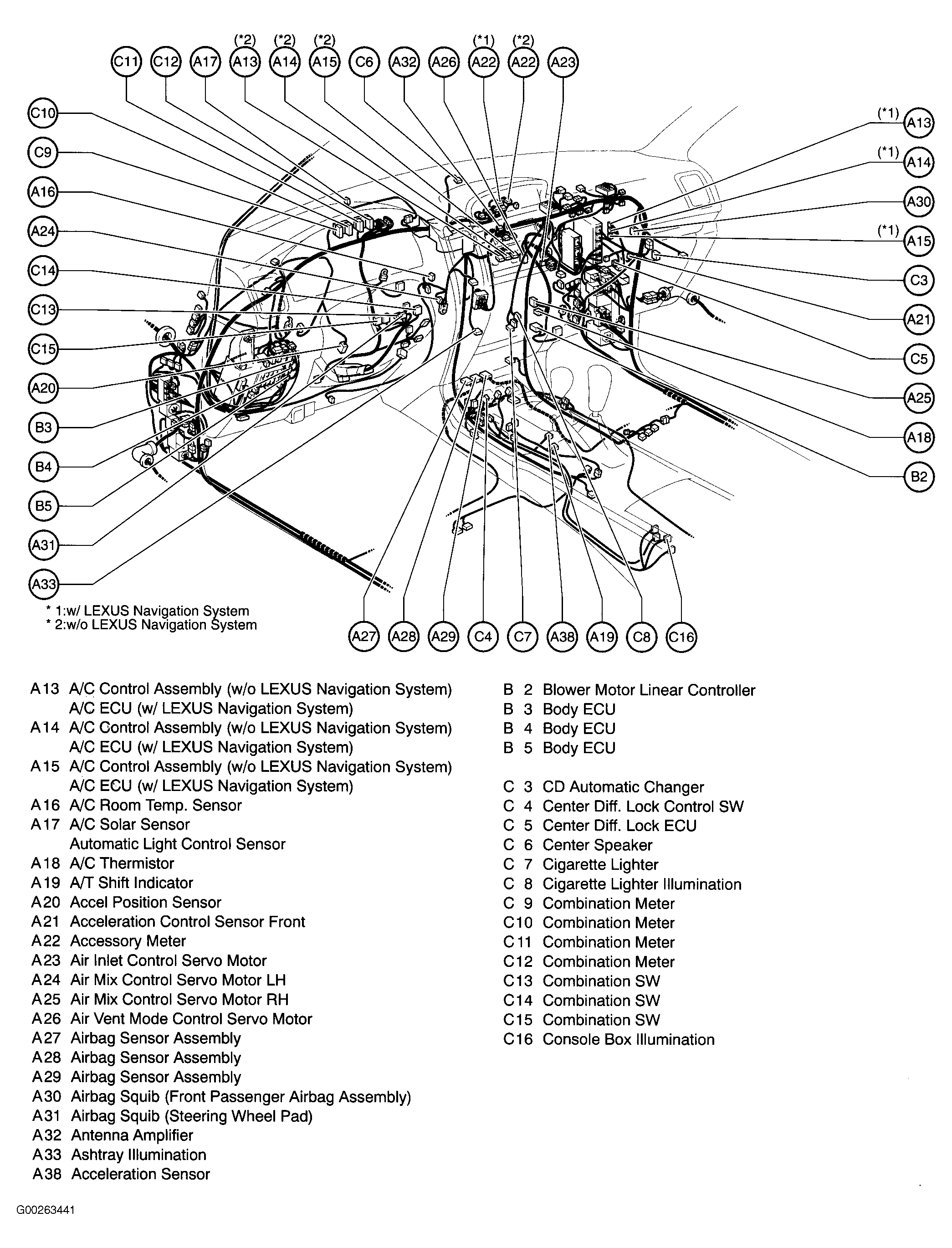 | A/C ECU (W/Navigation) | Behind right side of dash. See Figure. |