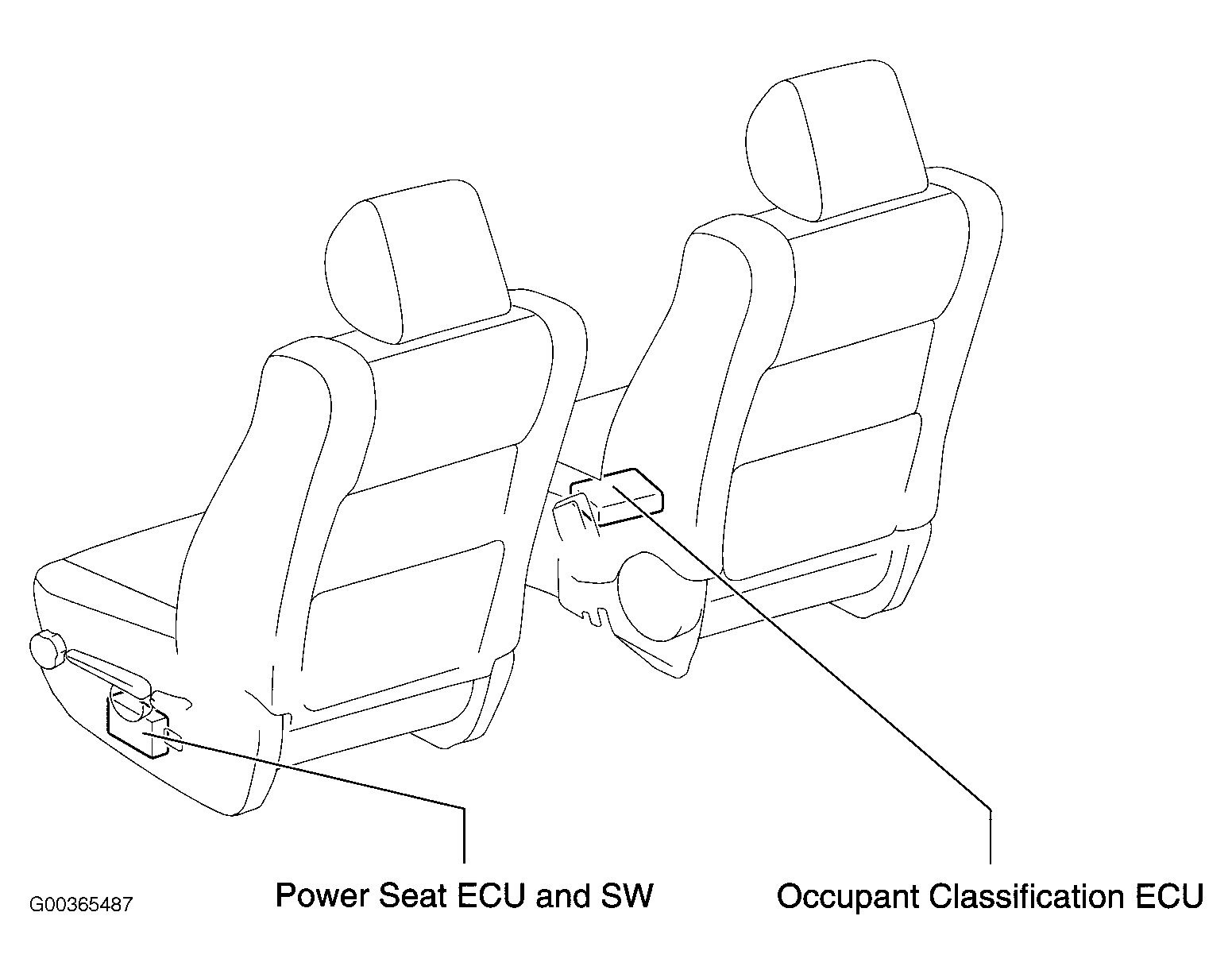 | Power Seat ECU & SW | Lower left side of driver's seat. See Figure. |