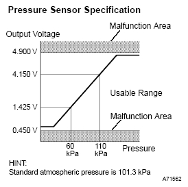 Indicates pressure as voltages. ECM supplies regulated 5 V to pressure sensor, and uses feedback from sensor to monitor EVAP system pressure (refer to Fig 3). | ||