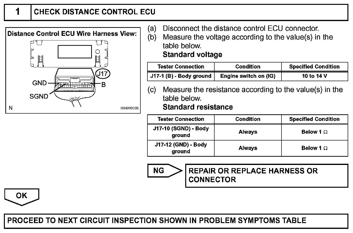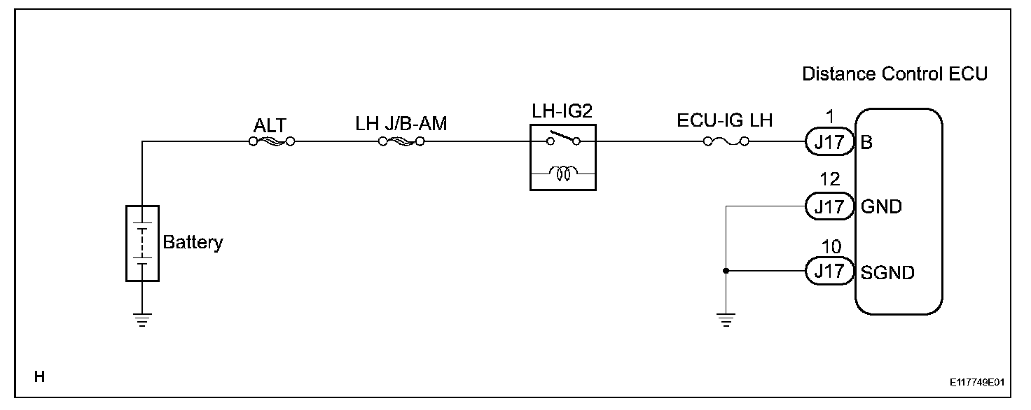 Distance Control ECU Power Source Circuit