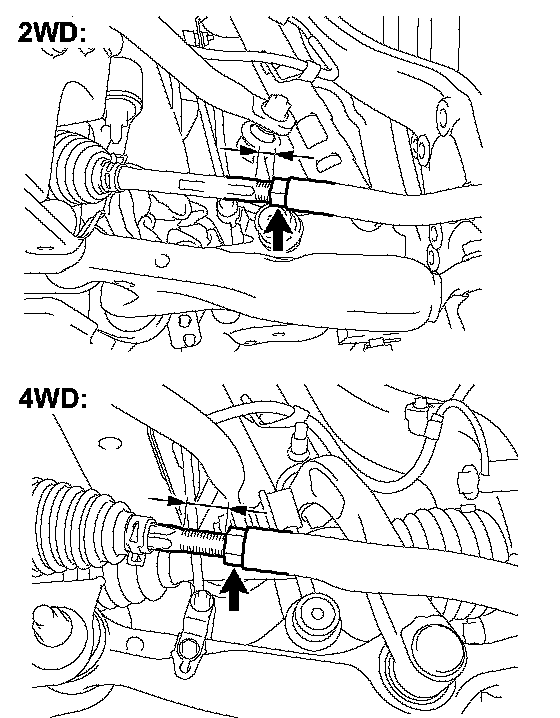 2) Shorten the longer rack end if the measured toe-in deviates toward the inner-side.