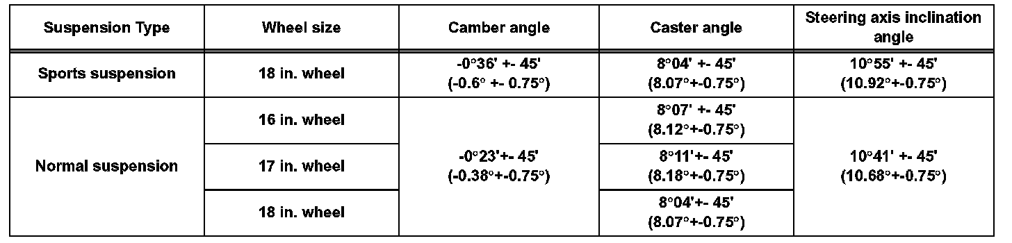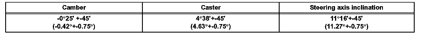 ^ The maximum tolerance of right and left difference for the camber and caster is 30' (0.5°) or less.