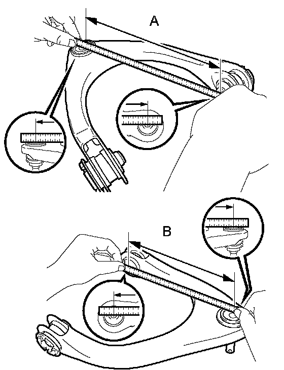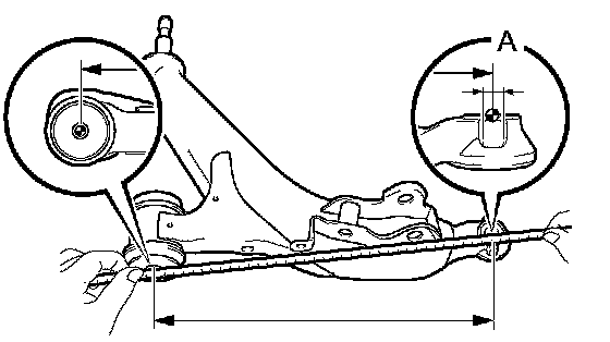 2) Measure the dimension between the center of the front lower suspension arm assembly bush and the center of position A.