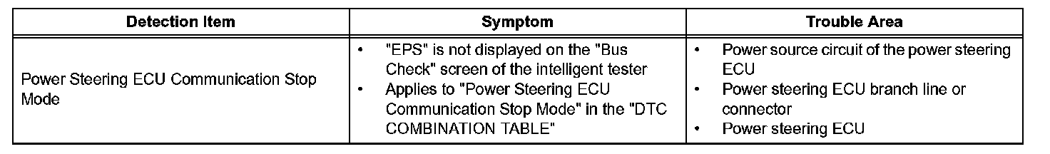 Power Steering ECU Communication Stop ModeDetection Item: