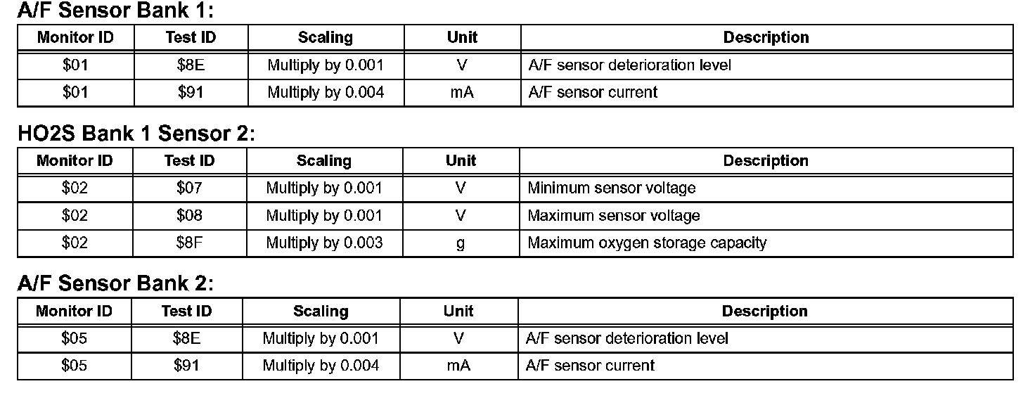 If you use a generic scan tool, multiply the test value by the scaling value listed is as given.