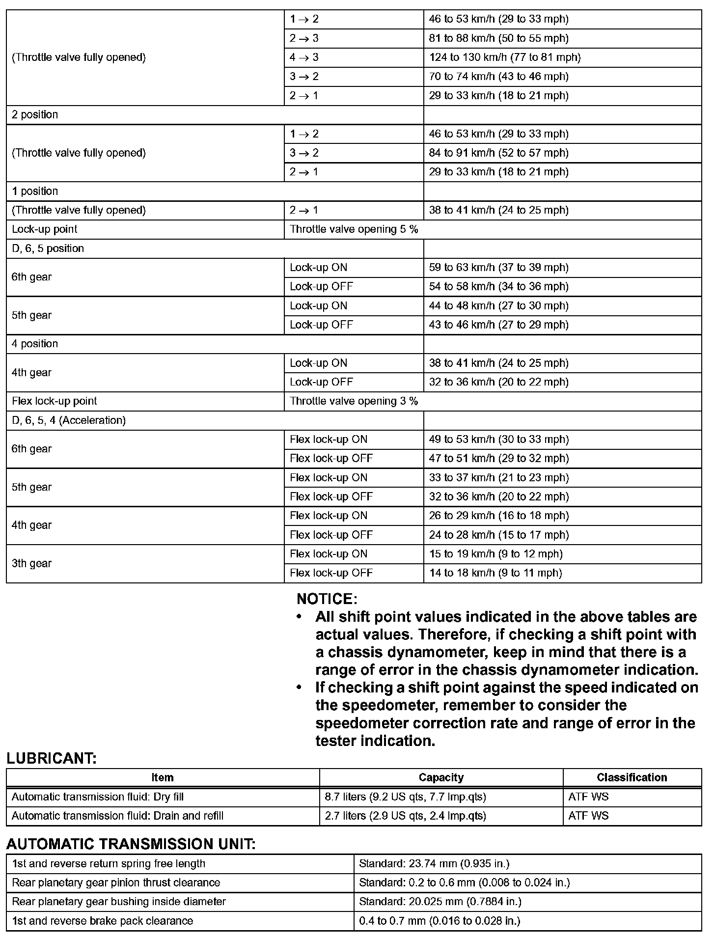 Automatic Transmission-Service Data (Part 2):