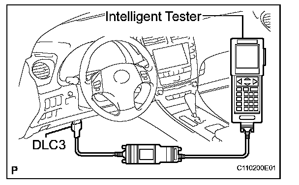 b. Connect the cable of the intelligent tester (with CAN VIM) to the DLC3, turn the engine switch on (IG) and attempt to use the intelligent tester. If the screen displays a communication error message, a problem exists in the vehicle side or with the tester side.