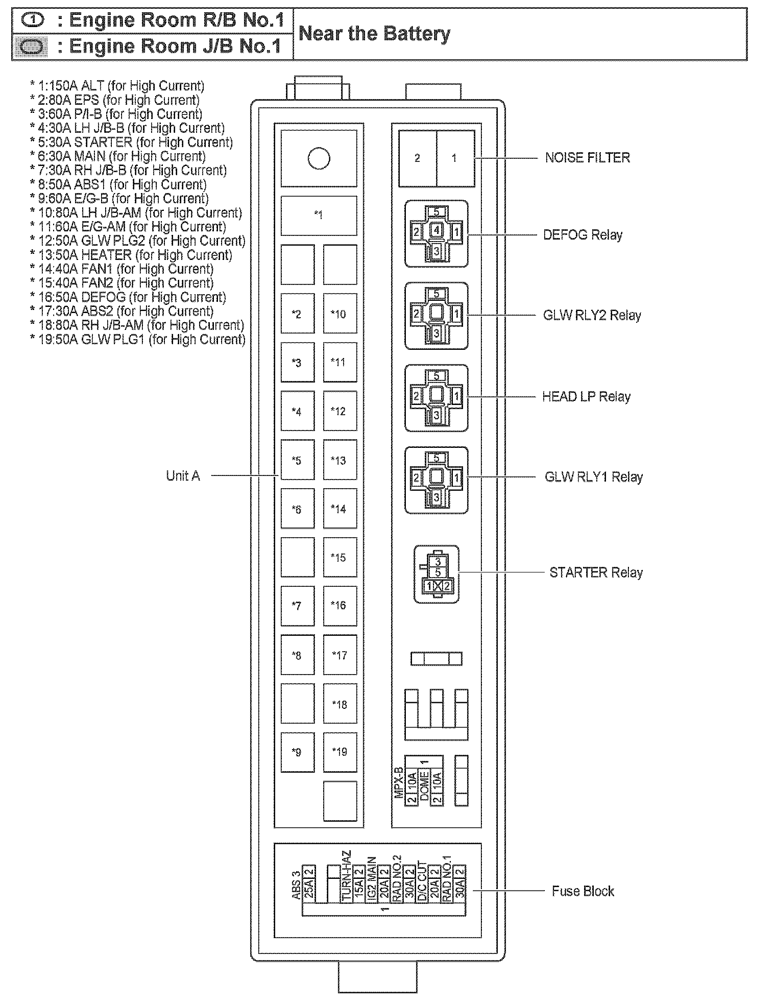 Engine Room R/B No.1, J/B No.1-Near The Battery: