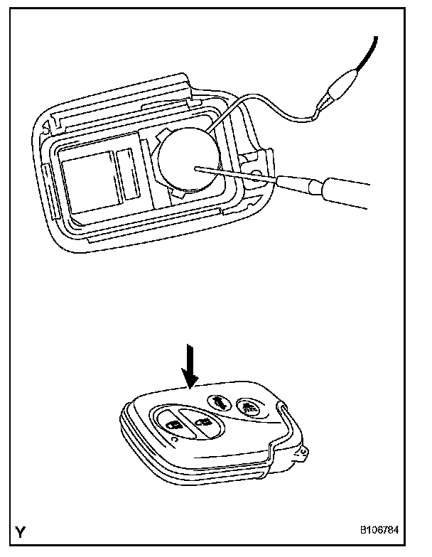 3. Front outside of the vehicle approximately 1 m (3.28 ft) from the driver side outside door handle, test the transmitter by pointing it at the vehicle and pressing a transmitter's switch.