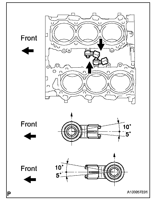 a. Install the 2 knock sensors so that they are horizontal as shown in the illustration. Then install the 2 bolts.