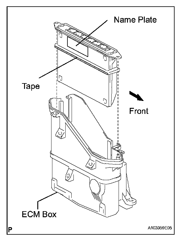 - Install the ECM on the ECM box with the name plate facing the inside of the vehicle.