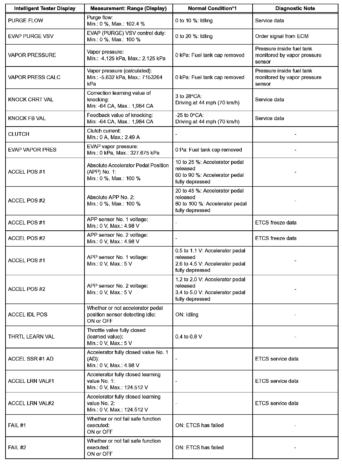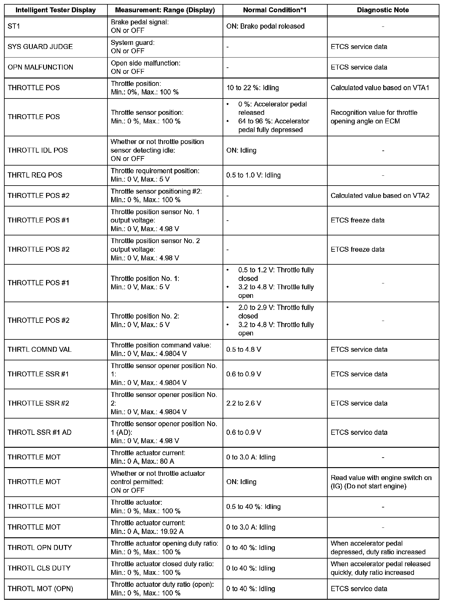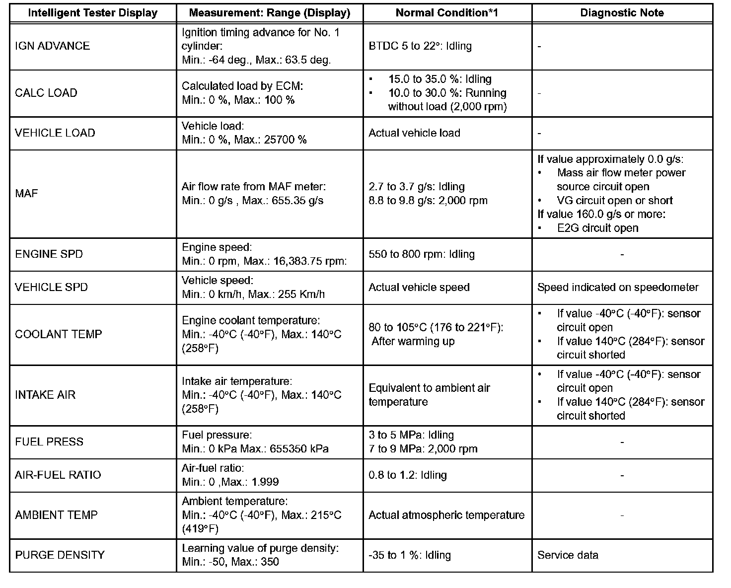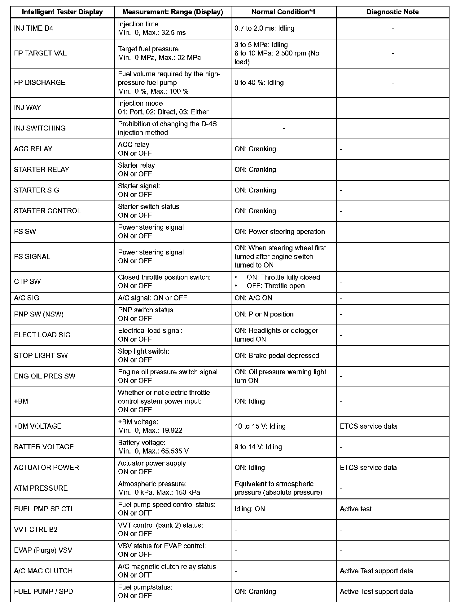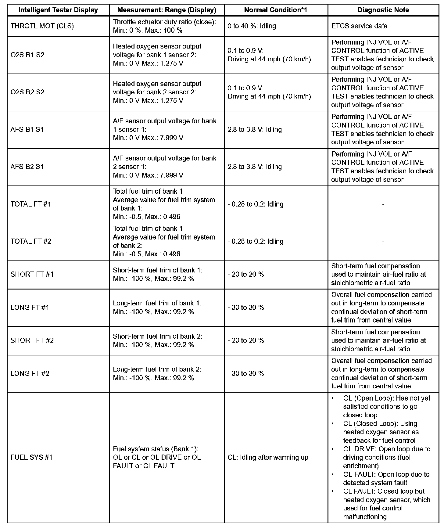 - *1: If no idling conditions are specified, the transmission gear selector lever should be in the N or P position, and the A/C switch and all accessory switches should be OFF.