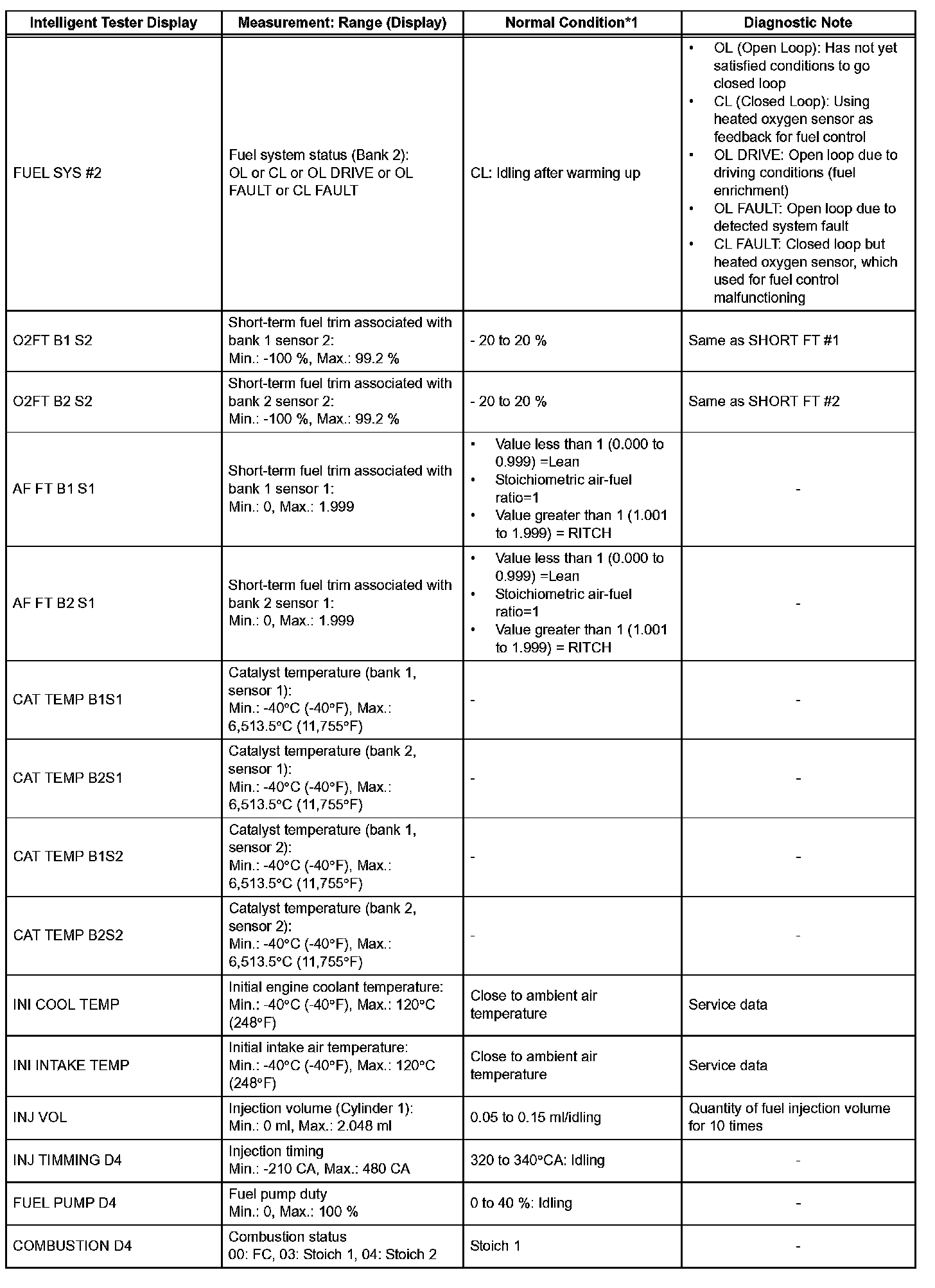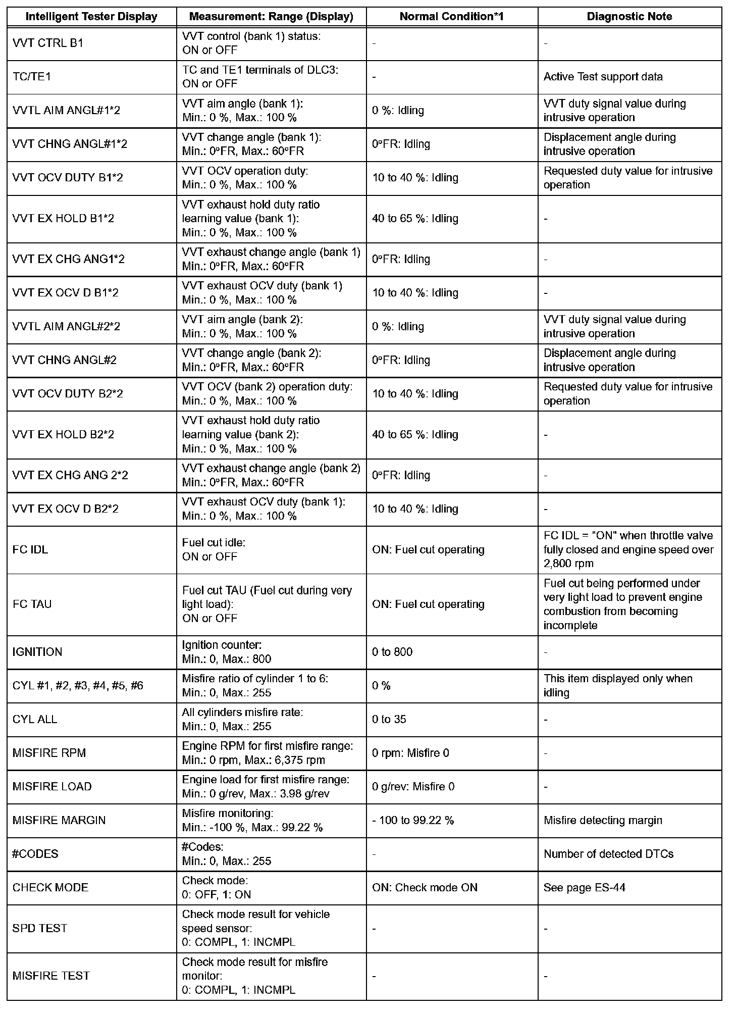 - *2: DATA LIST values are only displayed when performing the following ACTIVE TESTs: VVT B1, VVT B2, VVT EX B1 and VVT EX B2. For other ACTIVE TESTs, the DATA LIST value will be 0.