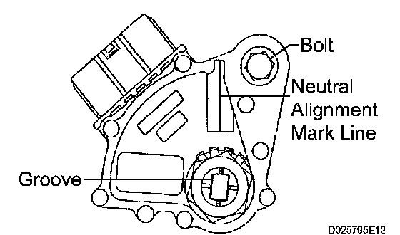 g) Align the neutral alignment mark line with the switch groove, and tighten the adjusting bolt.