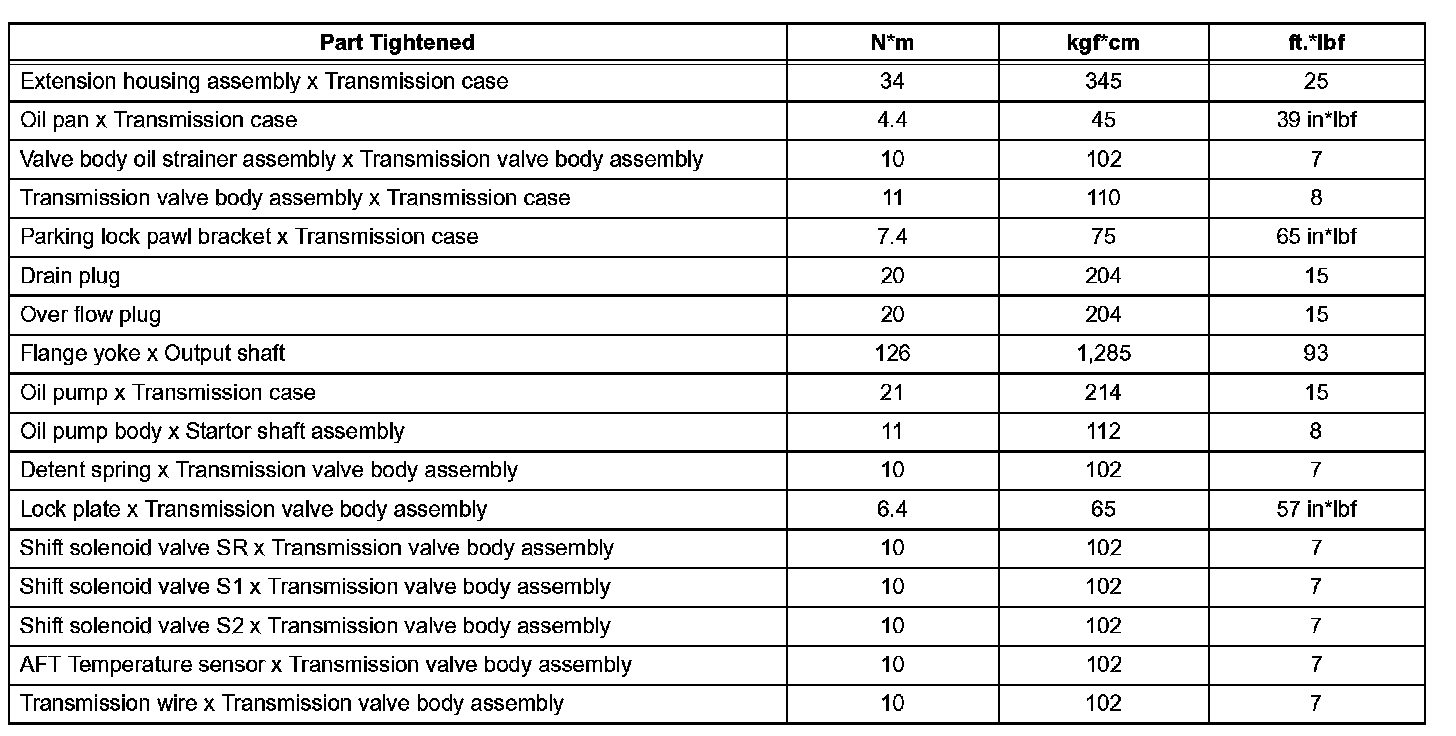 Automatic Transmission-Torque Specifications (Part 1):