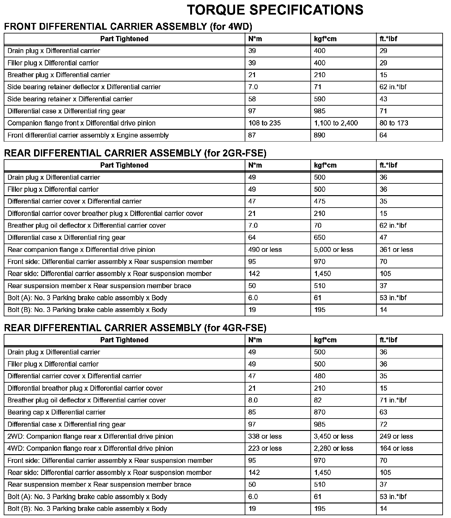 Differential-Torque Specifications: