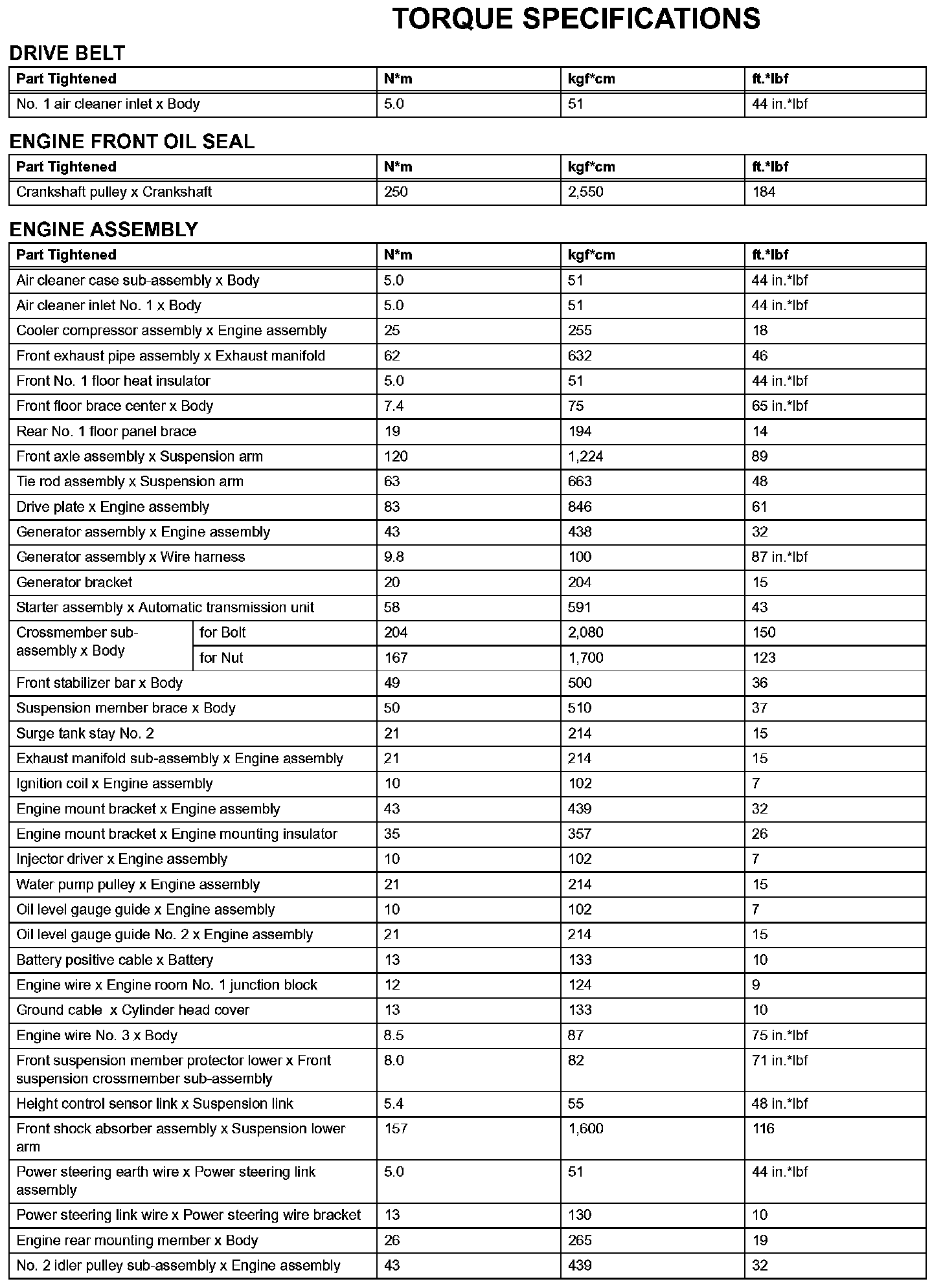 Engine Mechanical-Torque Specifications (Part 1):
