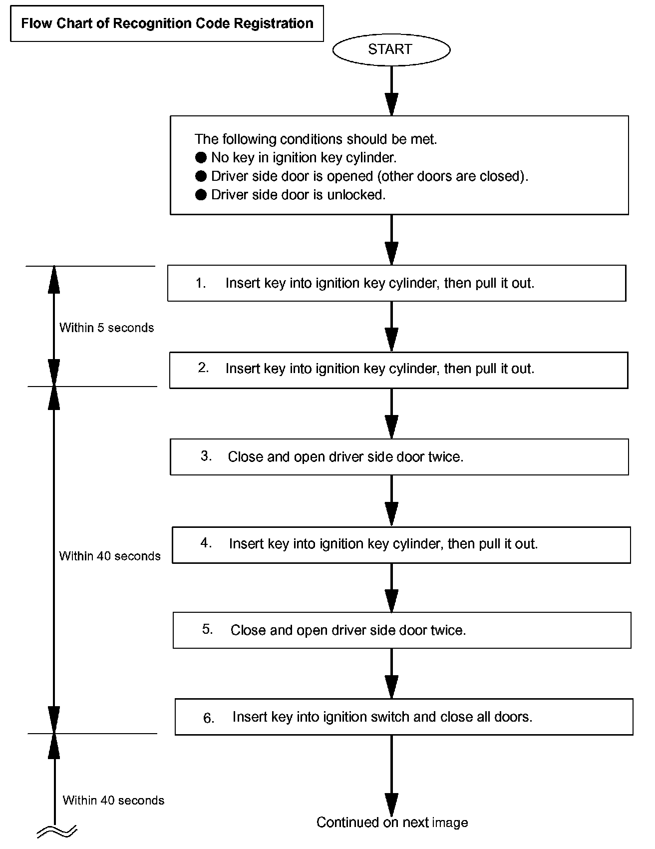 - Recognition code registration is necessary when replacing the door control transmitter or the door control receiver. The key has 2 codes: the key code (immobilizer code) and wireless code. All of these code types need to be registered. Refer to "ENGINE IMMOBILIZER SYSTEM (W/O SMART KEY SYSTEM)" for the key code (immobilizer code) registration procedures.