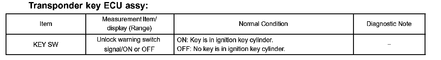 DATA LISTHINT: Using the hand-held tester's DATA LIST allows switch, sensor, actuator and other item values to be read without removing any parts. Reading the DATA LIST early in troubleshooting is one way to save time.