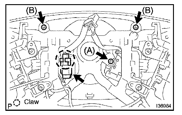 d. Remove 2 screws (B) and the steering wheel LWR cover.