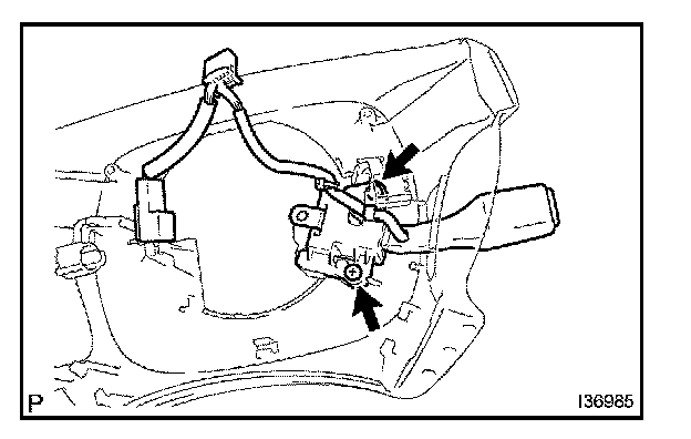 e. Remove the 2 screws and cruise control main switch assembly.