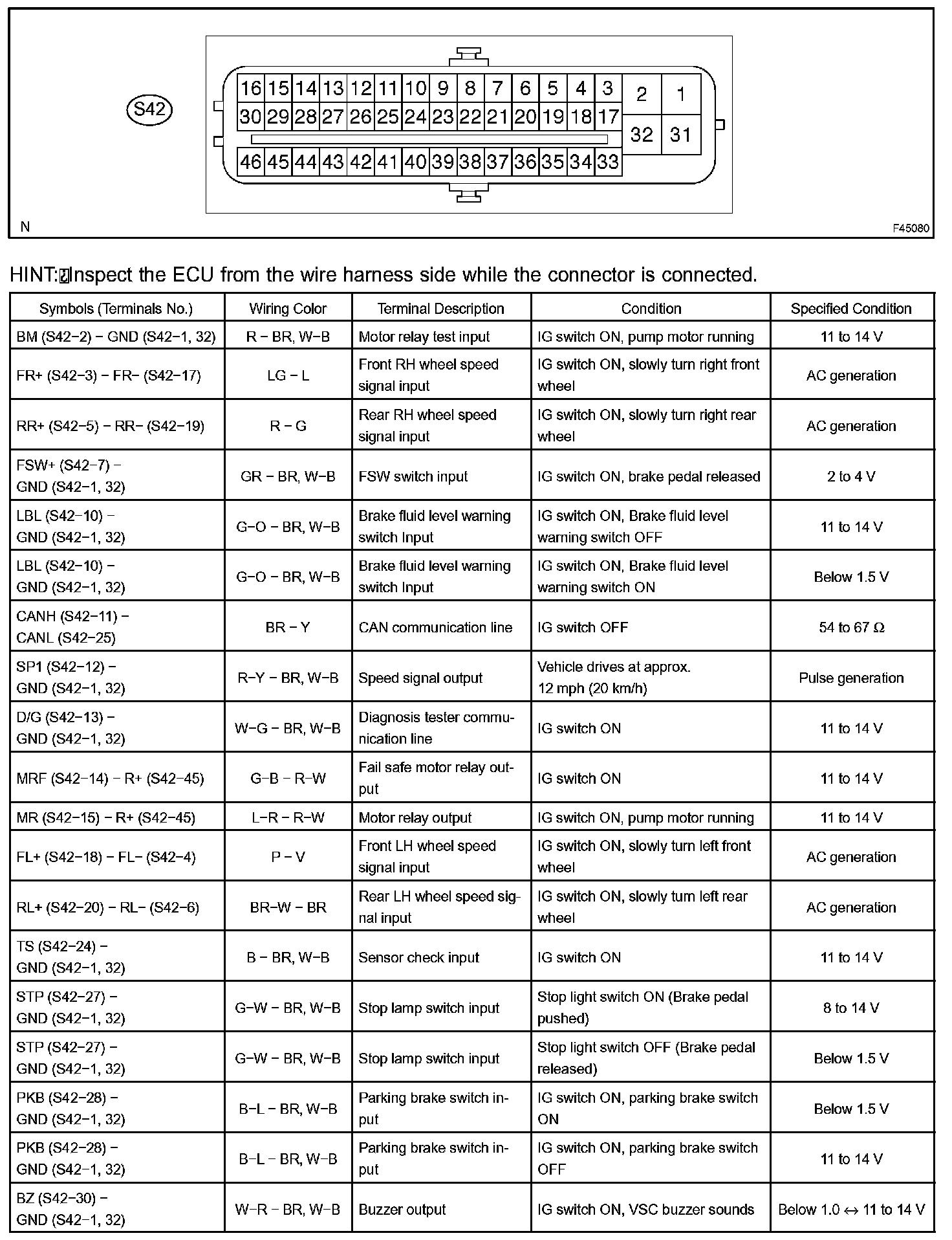 Terminals Of Control Module/Pinouts-Skid Control ECU (Part 1):