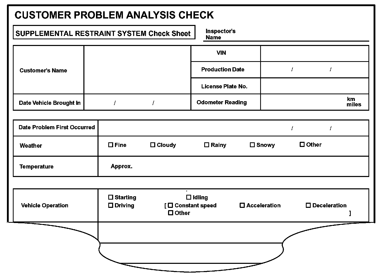 - As much information as possible should be gathered for reference. Even past problems that seem unrelated may help in some cases. In the Diagnostic section, a customer problem analysis table is provided for each system.
