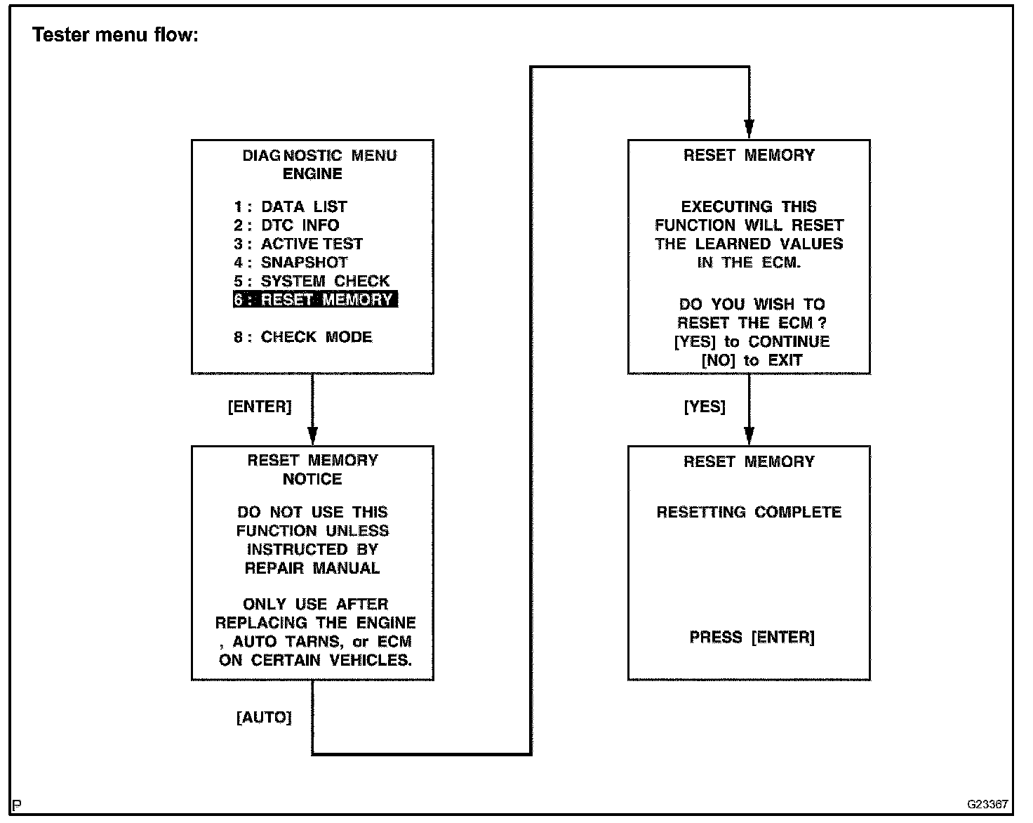 CAUTION: After performing the RESET MEMORY, be sure to perform the ROAD TEST described earlier.