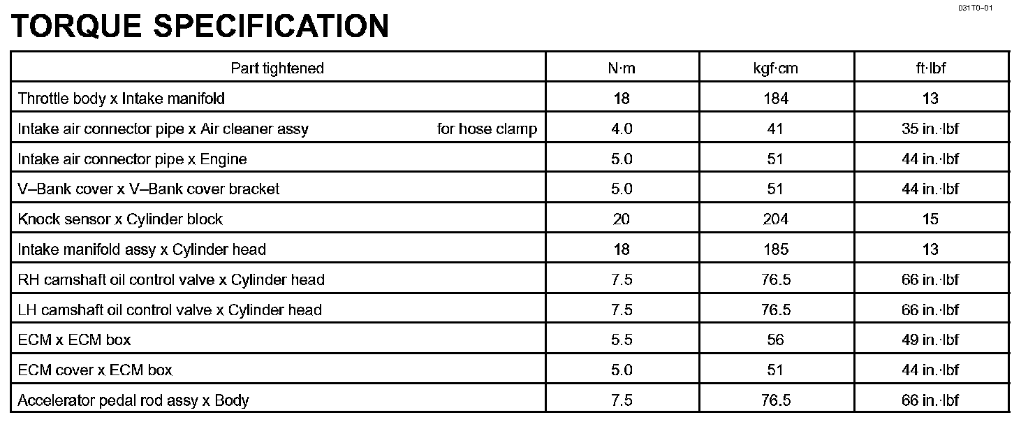 Engine Control System - Torque Specification: