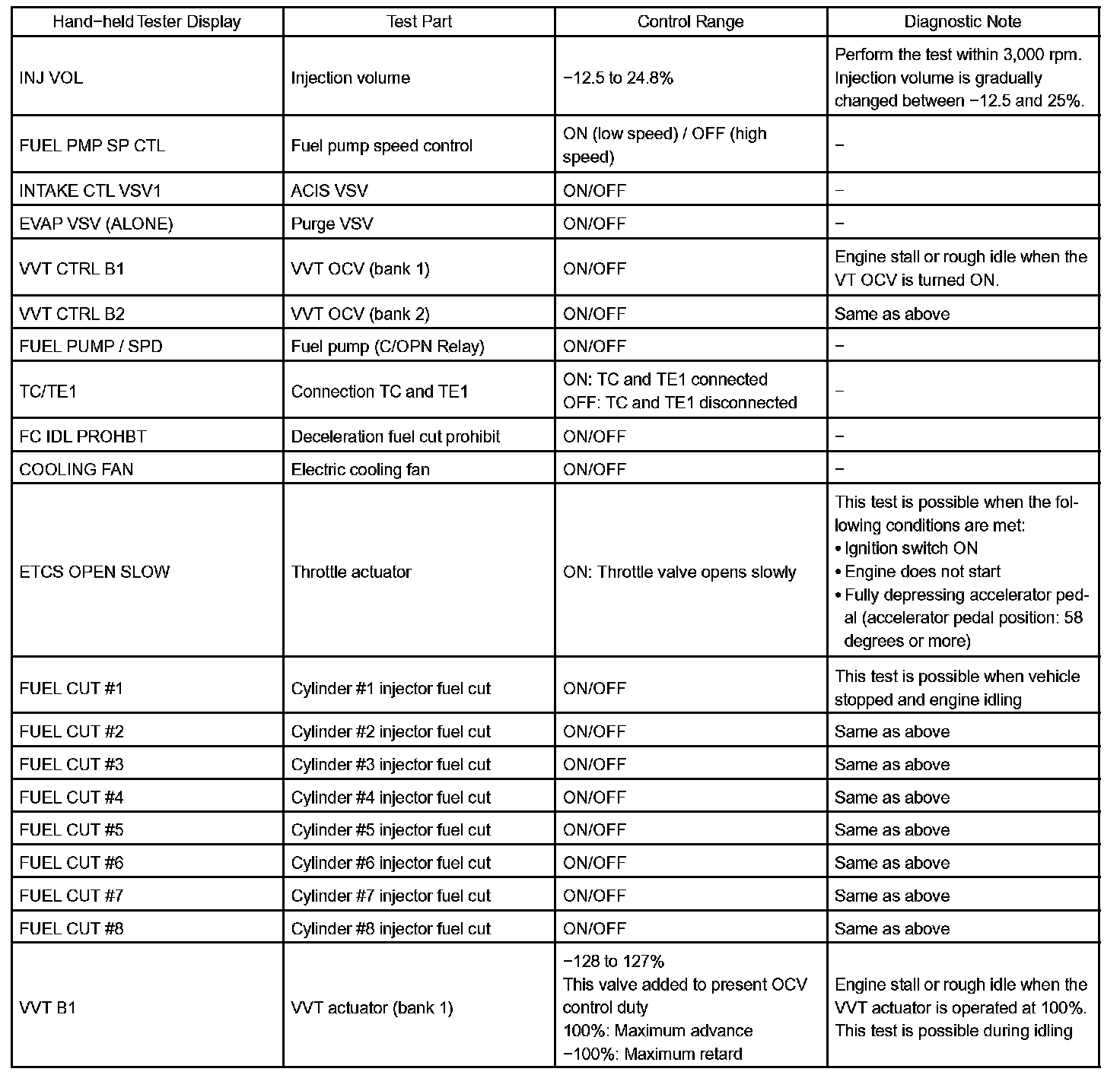 ACTIVE TESTHINT: Performing the hand-held tester's ACTIVE TEST allows relay, Vacuum Switching Valve (VSV), actuator and other items to be operated without removing any parts. Performing the ACTIVE TEST early in troubleshooting is one way to save time. The DATA LIST can be displayed during the ACTIVE TEST.