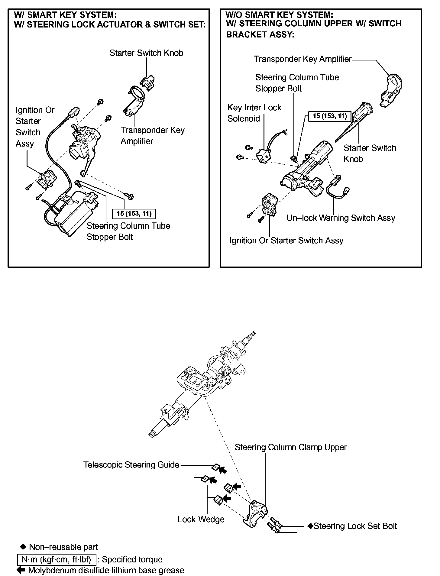 b. Remove the 2 nuts and the multiplex tilt & telescopic ECU.