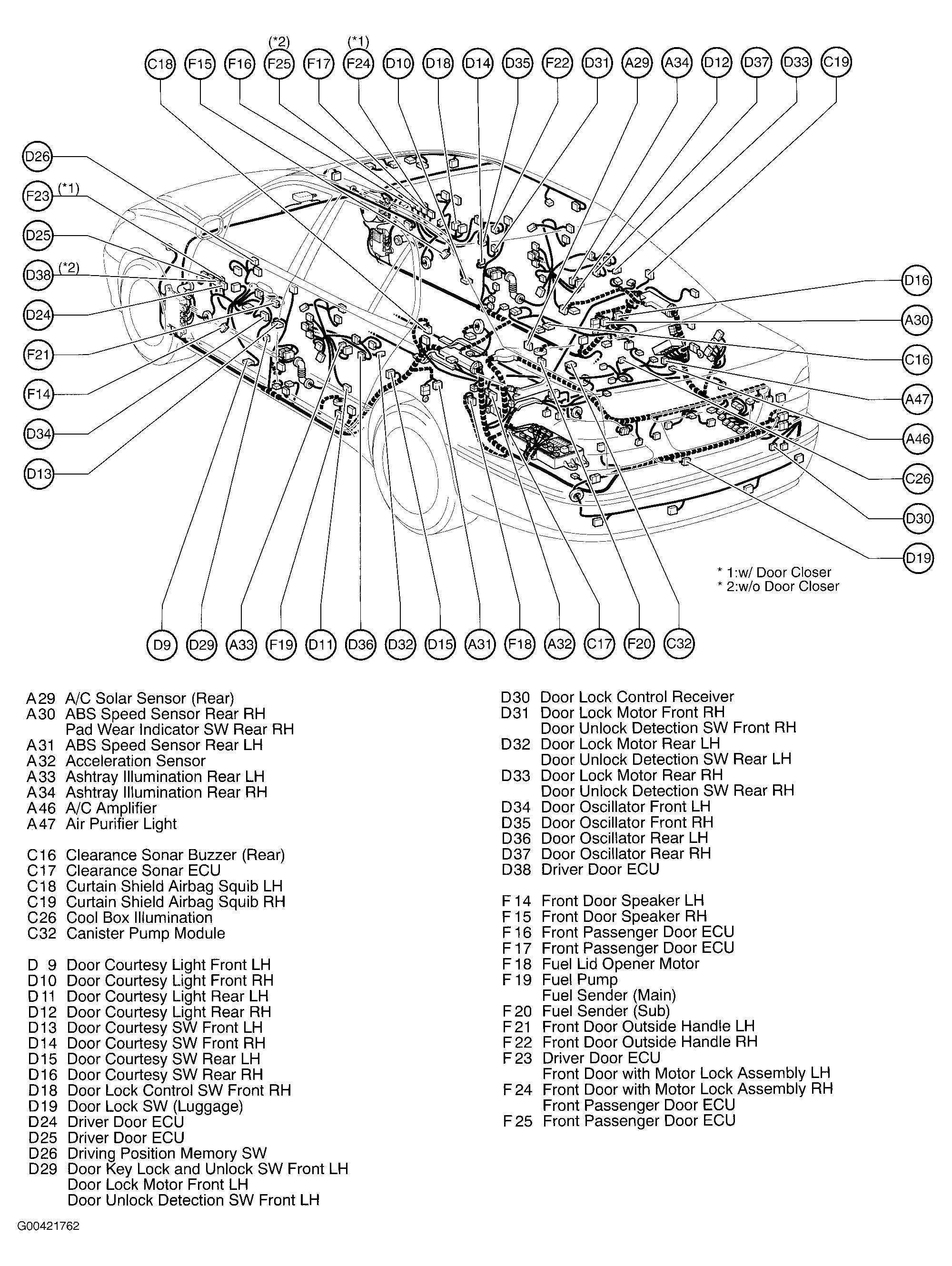 | Door Lock Control Receiver | Right rear of luggage compartment. See Figure. |