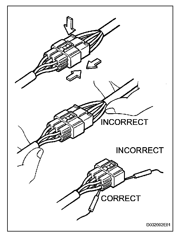 3. Before connecting a connector, check that there are no deformed, damaged, loose or missing terminals.
