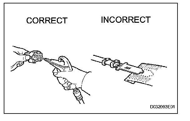 2. Never twist, pull or slacken the wire harness more than necessary.