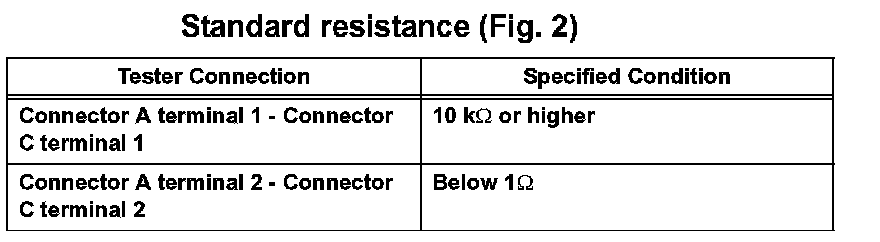 1. Disconnect connectors A and C and measure the resistance between them.