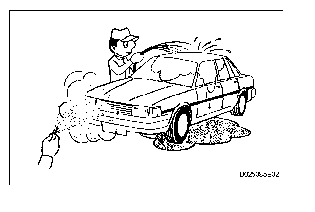 - Never sprinkle water directly into the engine compartment. Indirectly change the temperature and humidity by spraying water onto the front of the radiator.